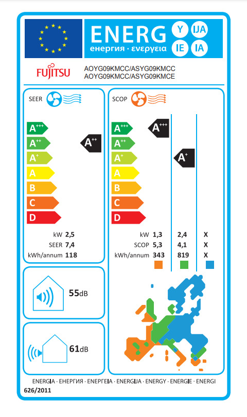 - Εποχιακός συντελεστής απόδοσης: (SCOP): Μέσης Ζώνης: (Θέρμανση): 4.1/5,3