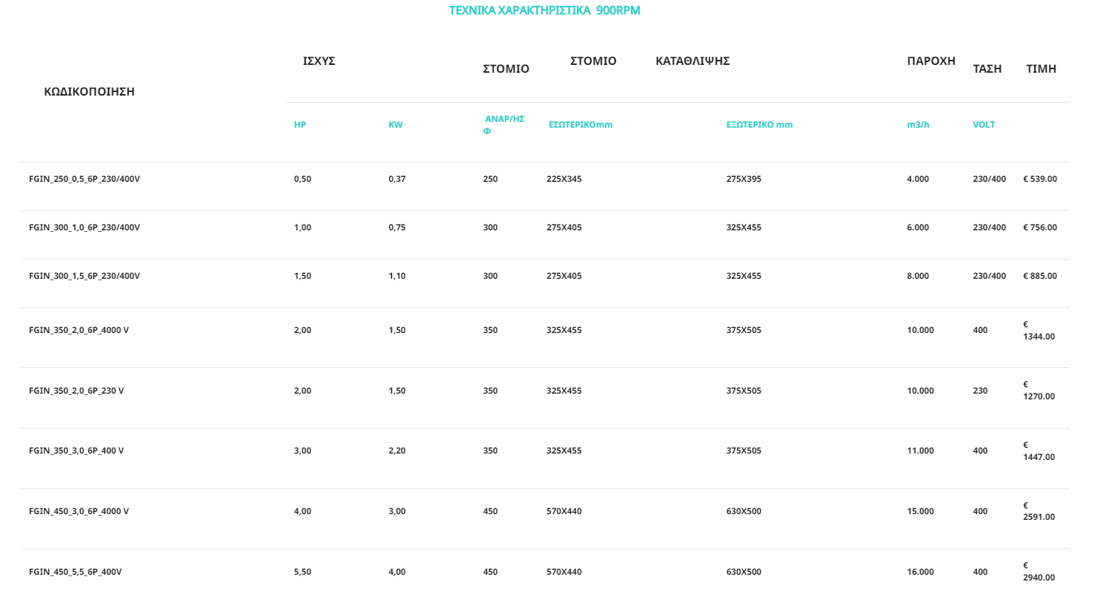 Φυγοκεντρικοί απορροφητήρες Μονής Αναρρόφησης 900 RPM
